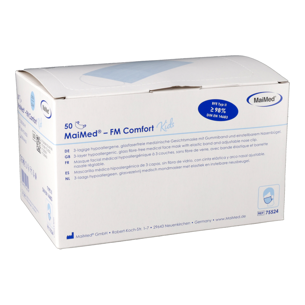 Medizinische Gesichtsmasken für Kinder bestehen aus drei Lagen hautfreundlichem Vliesstoff und bieten zuverlässigen Schutz vor Tröpfchen und Verunreinigungen. Sie sind angenehm zu tragen und mit weichen Ohrschlaufen sowie einem verstellbaren Nasenbügel ausgestattet, der für einen sicheren und bequemen Sitz sorgt.