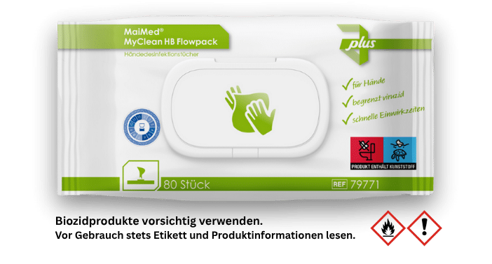 Die gebrauchsfertigen, alkoholhaltigen Desinfektionstücher sind ideal für die hygienische Händedesinfektion. Sie wirken zuverlässig. Die Tücher sind praktisch in der Anwendung, trocknen schnell und hinterlassen ein sauberes, gepflegtes Hautgefühl.
